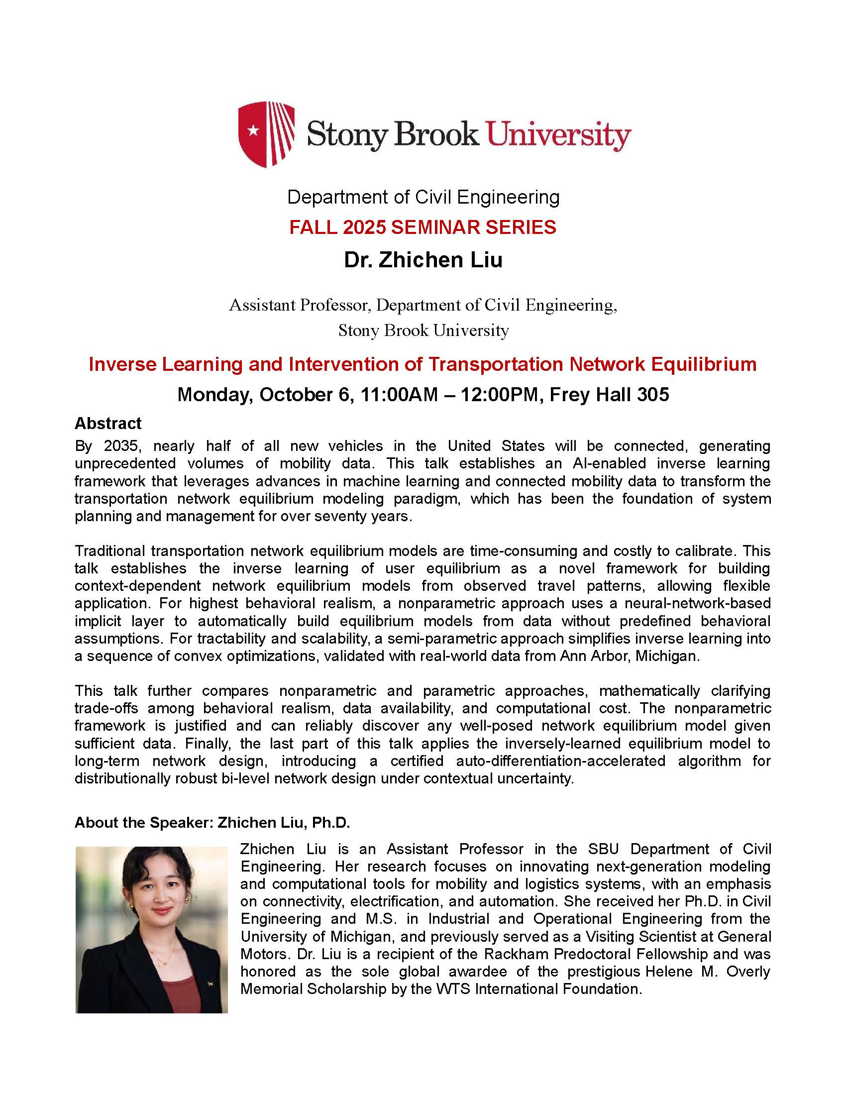 "Inverse Learning and Intervention of Transportation Network Equilibrium", Zhichen Liu, PhD